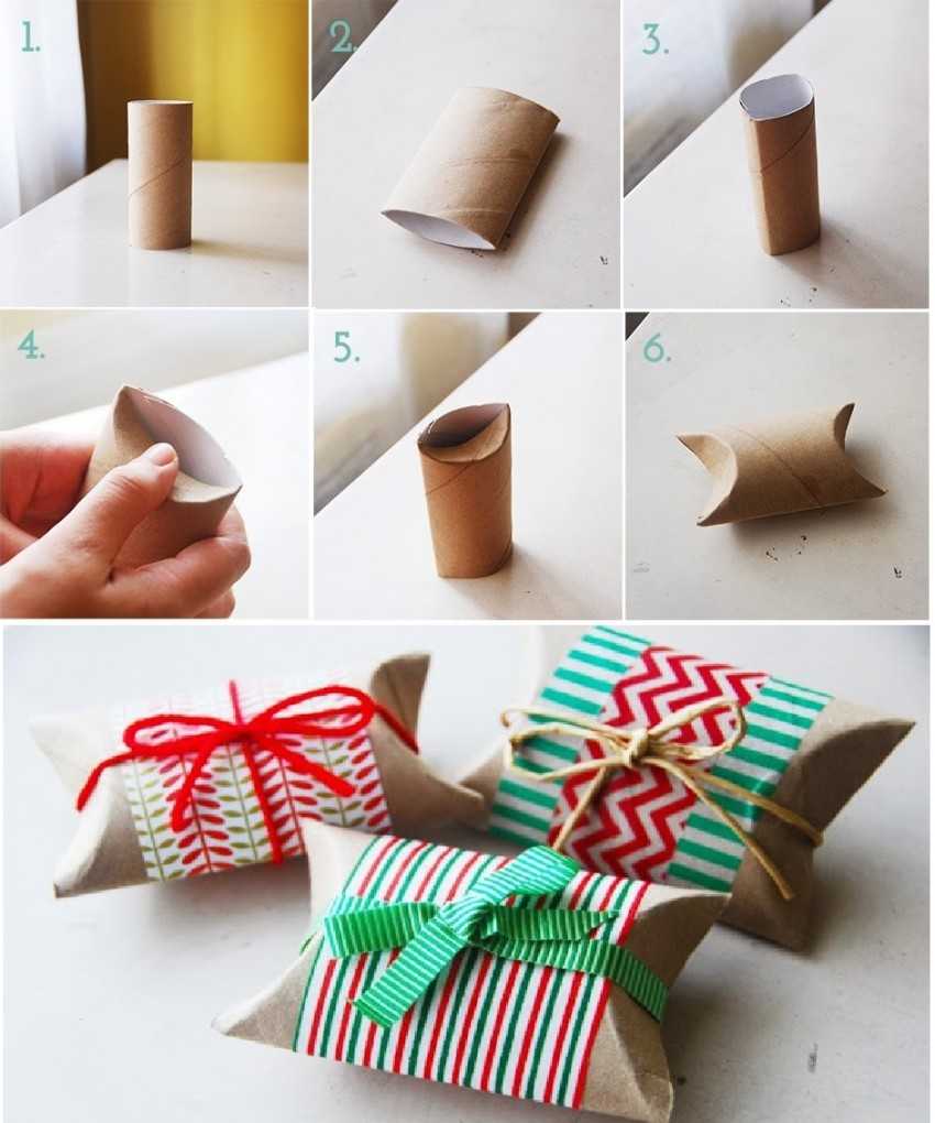 Ненужный ролик вполне можно превратить в милую коробочку, чтобы вручить мини — презент. Согните втулку пополам вдоль, чтобы она получилась плоской. Далее края половинок нужно сложить полумесяцем, так чтобы они закрывали отверстие втулки, с обеих сторон.