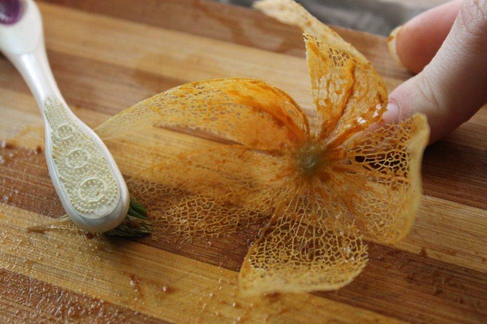 - К ним приклеивают маленькие засушенные листочки и лепестки цветов.