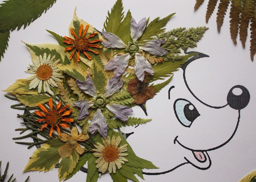 Поделки из засушенных листьев получаются очень яркими и оригинальными. Вместе с листьями можно использовать и другие материалы, например, сухие цветы или шишки. Желуди и каштаны также подойдут для совместных творческих занятий.