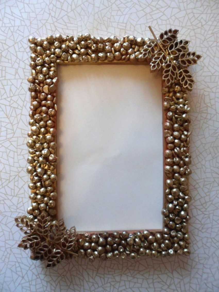 Оригинальным украшением в стиле рустик станет рамка для фотографий или для зеркала. Довольно просто и практично взять в качестве заготовки простую недекорированную деревянную фоторамку, жёлуди и клей. Жёлуди можно сочетать с другими элементами осени: каштаны, веточки, скорлупу грецкого ореха, высушенные ягоды рябины, даже листья.