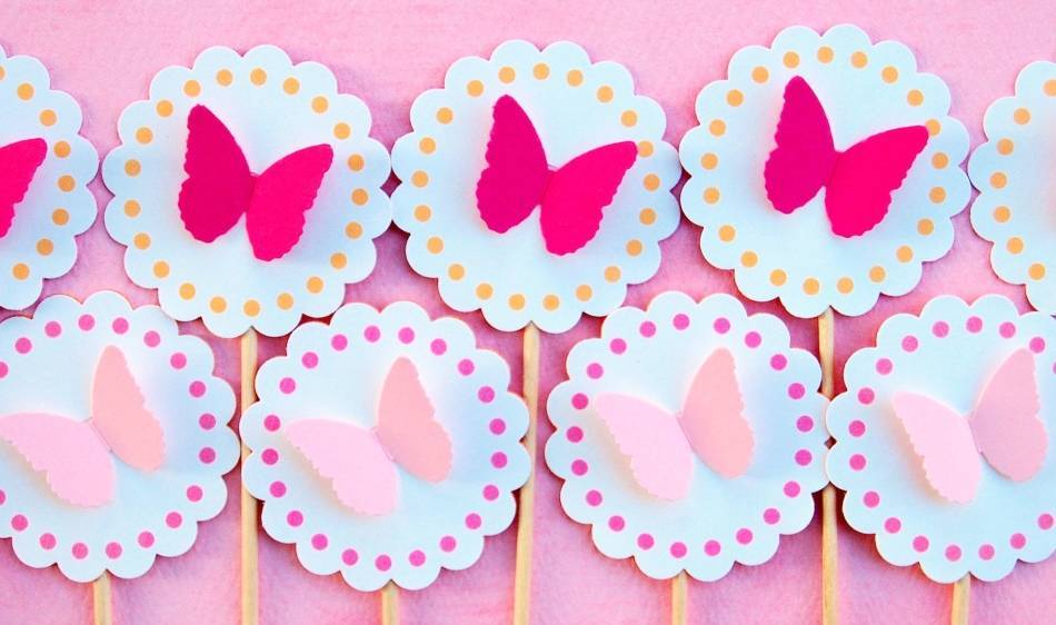 В случае если вы не хотите заморачиваться, тогда найдите в интернете шаблоны, распечатайте их, вырежьте и просто приклейте на шпажку. Если же вы готовы потратить немного больше времени, тогда раскрасьте их вручную и дополнительно задекорируйте. Просто в этом случае стандартный флажок можно заменить цветочком, сердечком или какой-нибудь зверушкой.