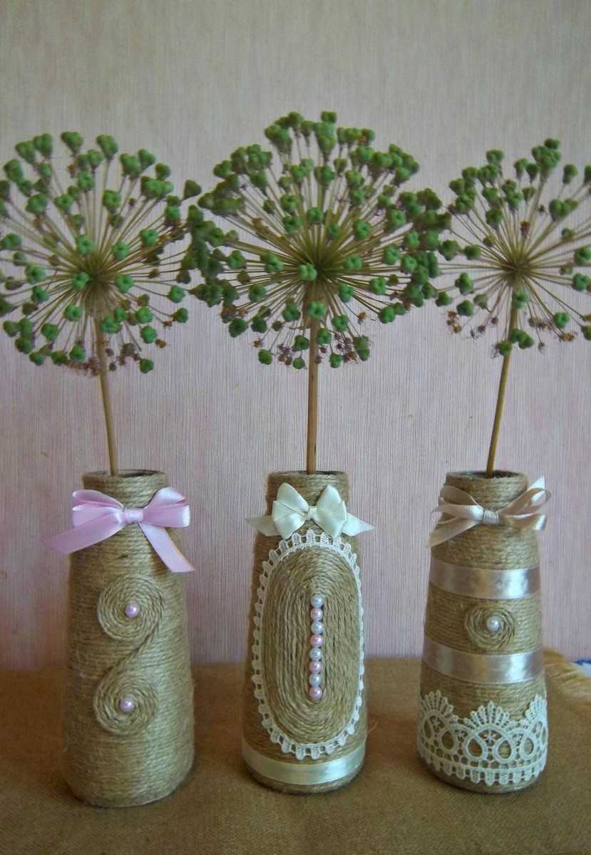 - Верхушку вазы можно задекорировать тесьмой или другим декоративным элементом;