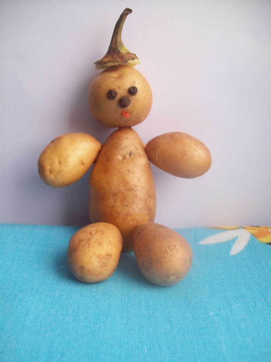 3. Для туловища понадобится большая картофелина. Прикрепите ее тем же способом.