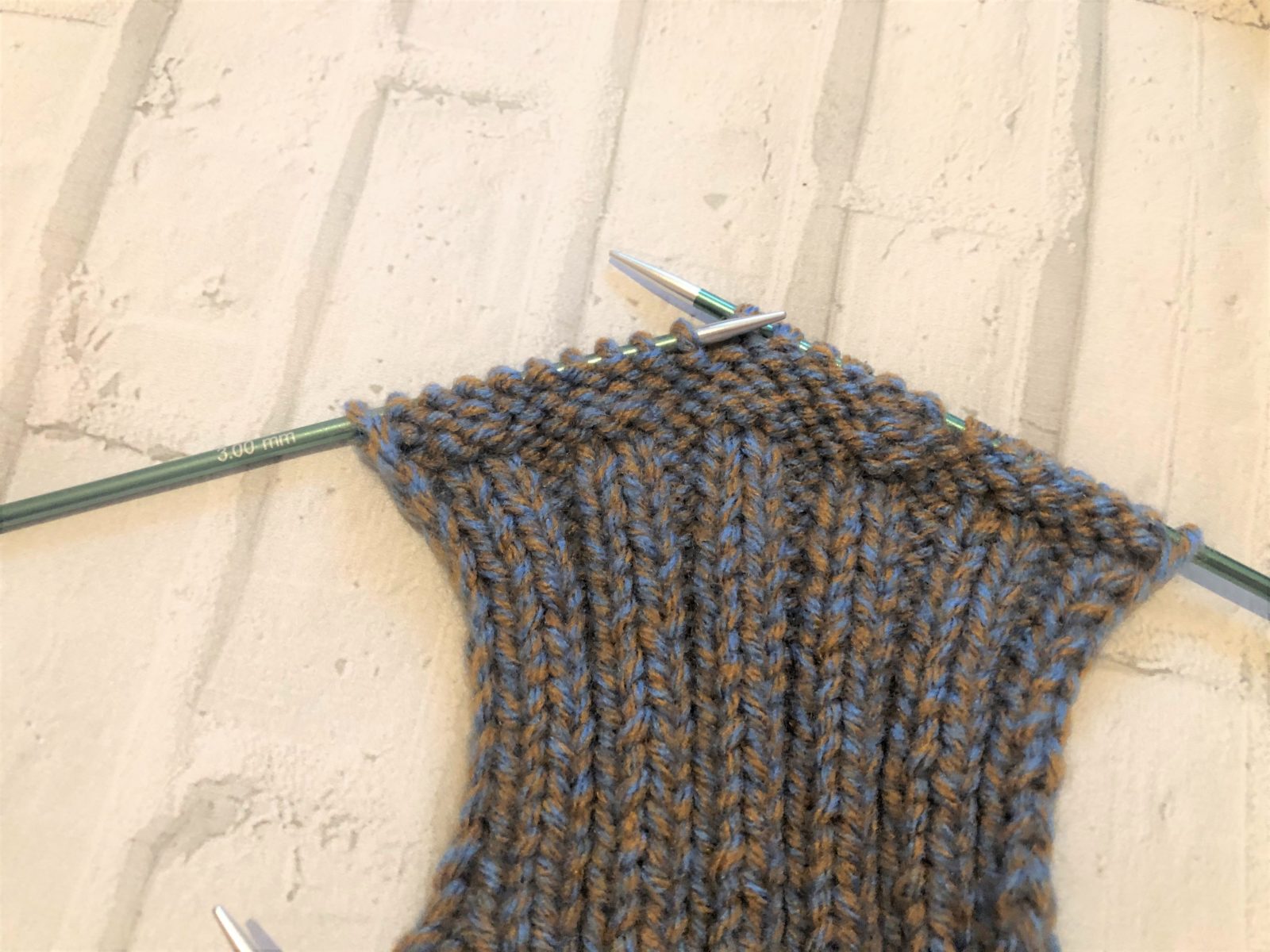 Ещё 10 сантиметров работы провязывается узором резинка – 1 лицевая петля чередуется с 1 изнаночной.