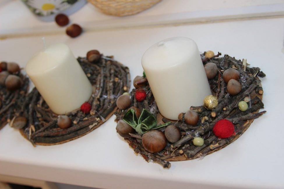 Крепим в середину свечу и восхитительная поделка готова. Она будет гармонировать к любому интерьеру и столу, и разным оттенкам, которые находятся в этой комнате.
