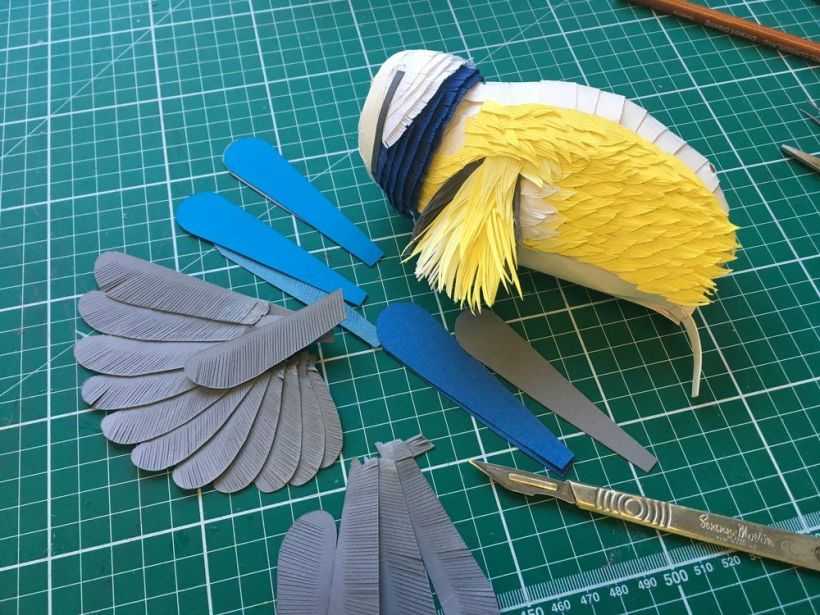 Его можно немного распушить в разные стороны. Основная часть попугая из бумаги готова.