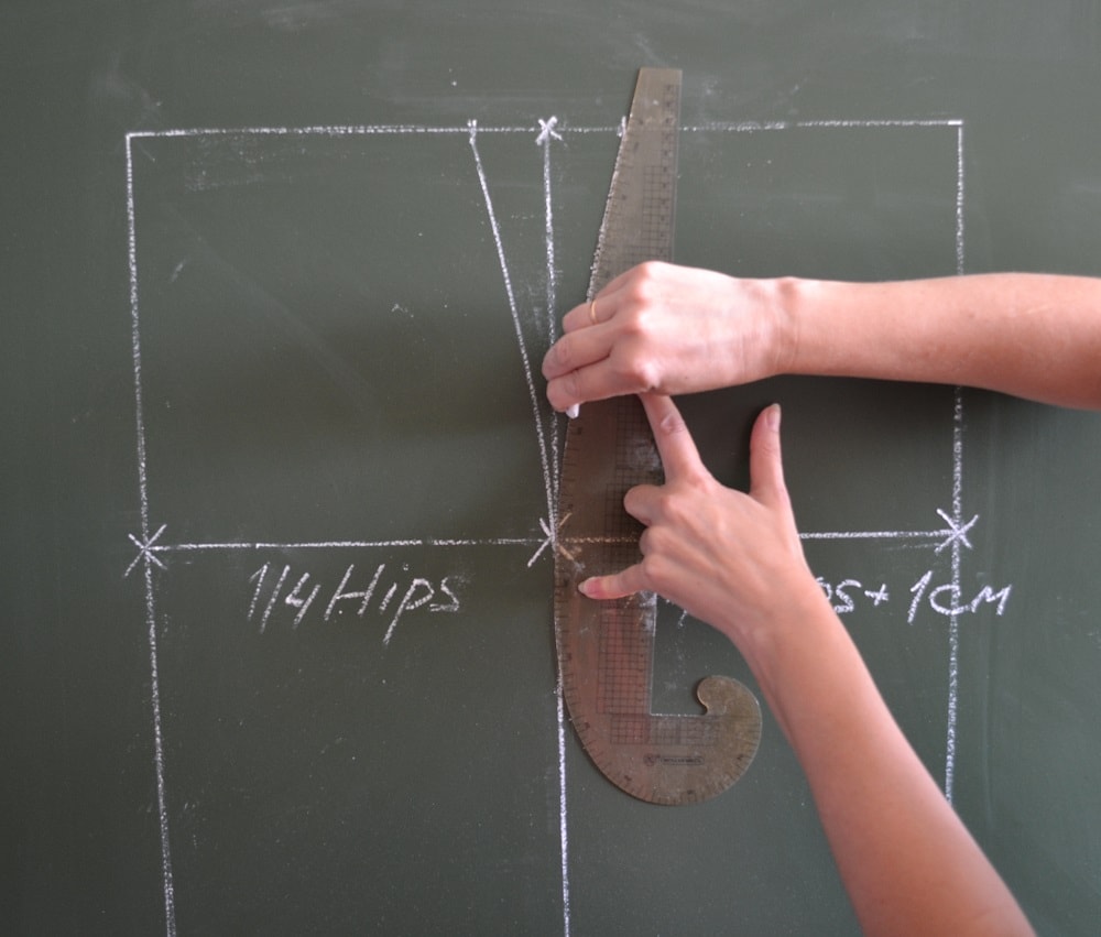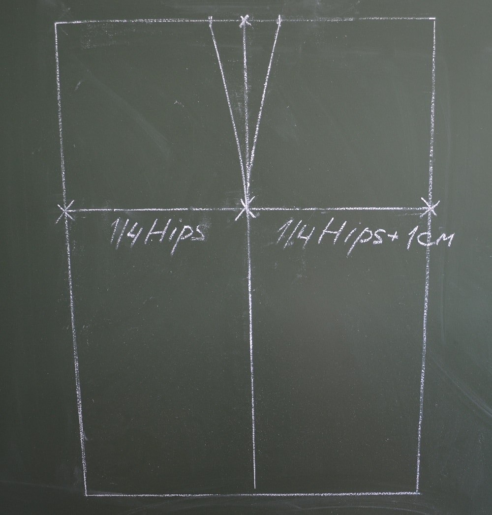 Боковые линии обеих половинок юбки карандаш готовы и теперь нужно рассчитать положение вытачек.