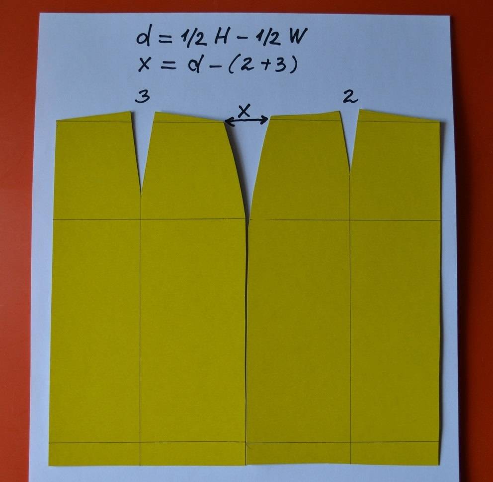 Теперь от этого значения нужно отнять сумму вытачек, задняя вытачка – 3см, передняя – 2см. Получим значение X.
