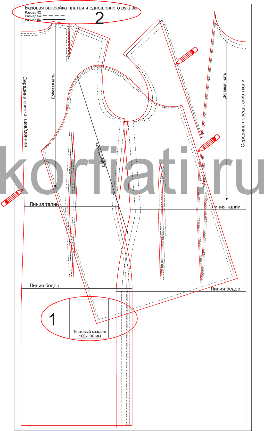 Просто скачайте! Готовая базовая выкройка платья 52-56 размеров