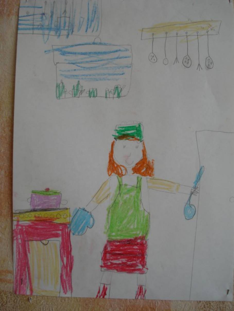 - Завершите рисунок добавлением других аксессуаров повара, таких как кухонные принадлежности, поворотные лопатки или варежки.