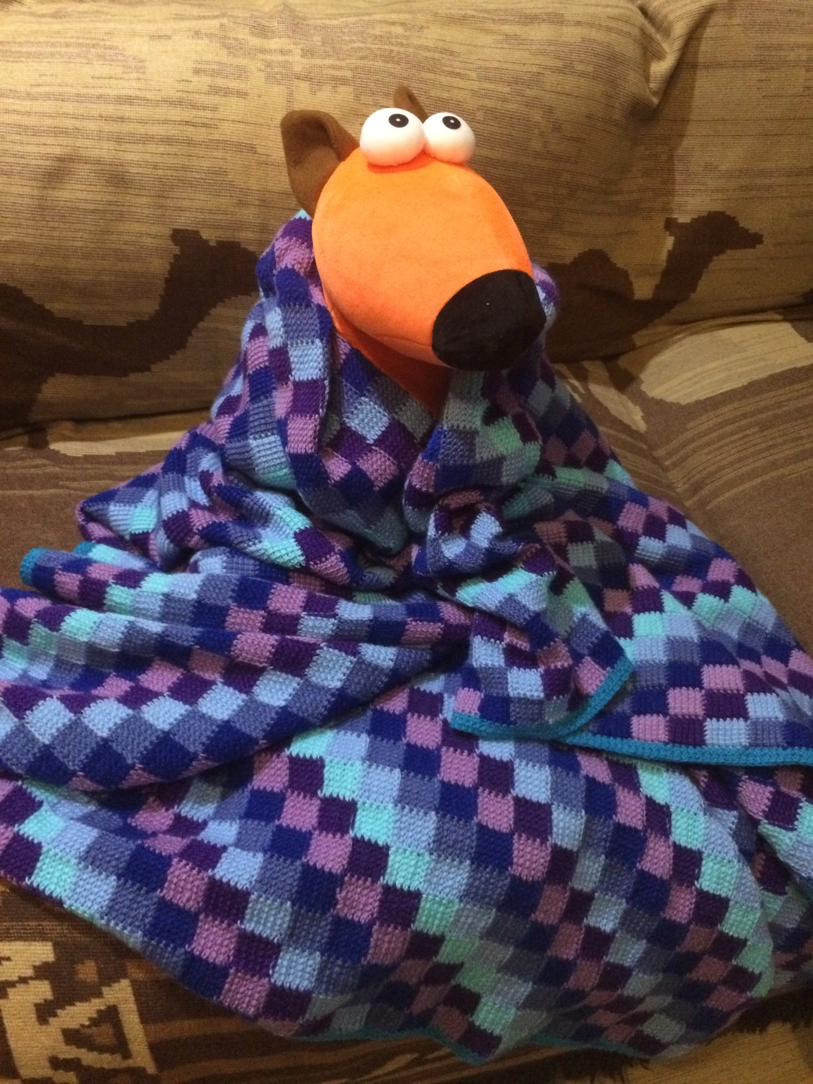 - После этого квадраты соединяются между собой с помощью полустолбиков. Плед готов.
