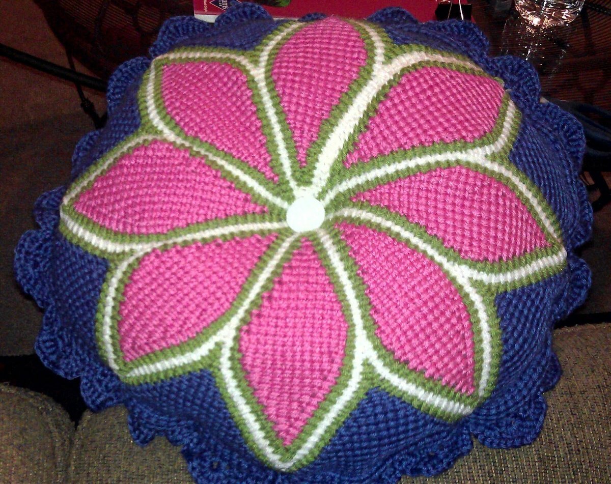 Тунисское вязание хорошо подходит для подушек. Особенно эффектно смотрятся круглые подушки.