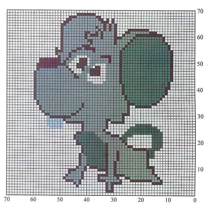 В-четвертых, необходима схема. Она по клеточно передает выбранный рисунок, где одна клетка равна одной петле. Каждому цвету соответствуют свои знаки.