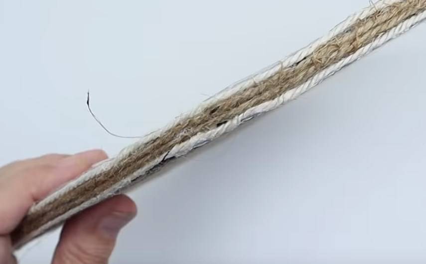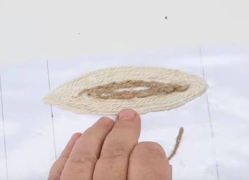 - Из отбеленного джута плетем косичку, которой обклеиваем верх подставки.