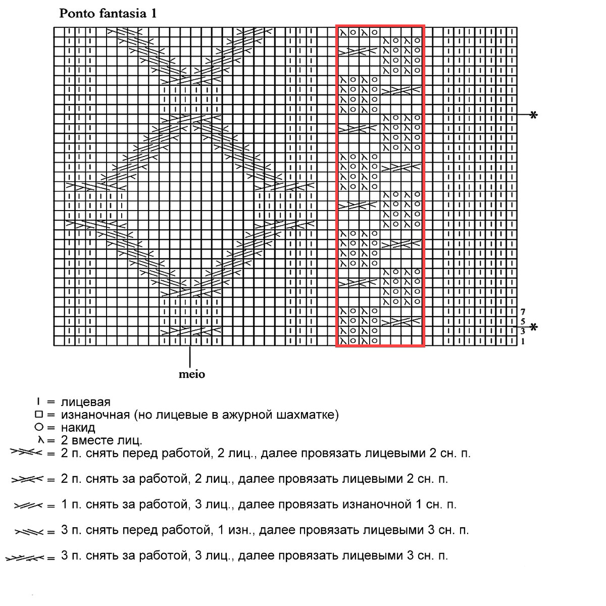 После 3-го переплетения вязать по схеме С, причём 3-е переплетение соответствует переплетению в 7-м р. схемы.