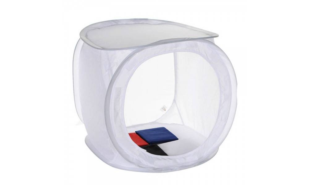 Он заменит белый предметный стол и рассеивающую насадку (лайтбокс) одновременно. Достоинства фотобокса: очень лёгкий, компактный — складывается втрое и убирается в чехол, а также недорогой — стоит около 2 тысяч рублей. Траты на его покупку невелики, а преимущества — огромны.