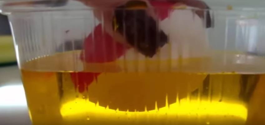 Растапливается такая основа по-разному. Некоторые очень быстро, а другие только на высокой температуре в микроволновке, им не подходит водяная баня. Чтобы основа не закипела, ставим её в микроволновку вместе со стаканом воды. Периодически достаём и перемешиваем.