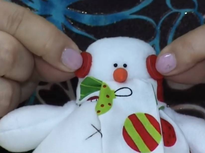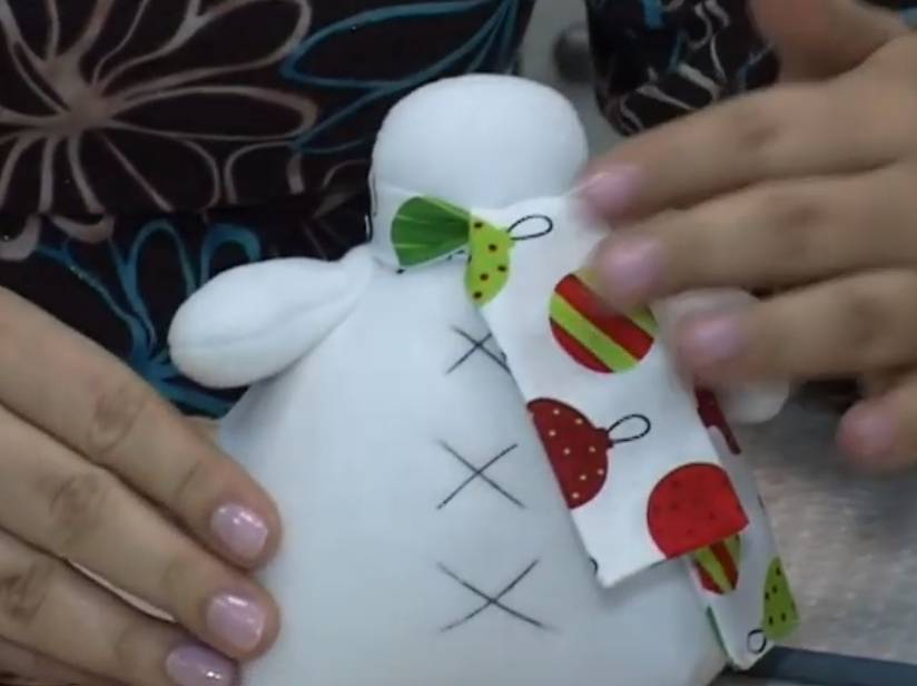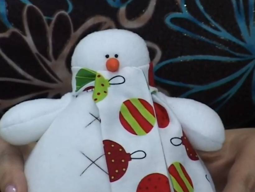 Забавный снеговичок готов. По такому же принципу изготавливаются и некоторые тряпичные куклы.