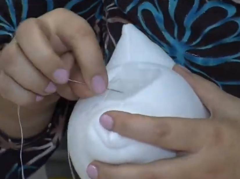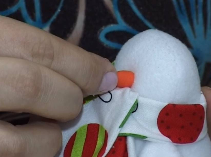 Из картона или ткани изготавливается нос и приклеивается к заготовке.