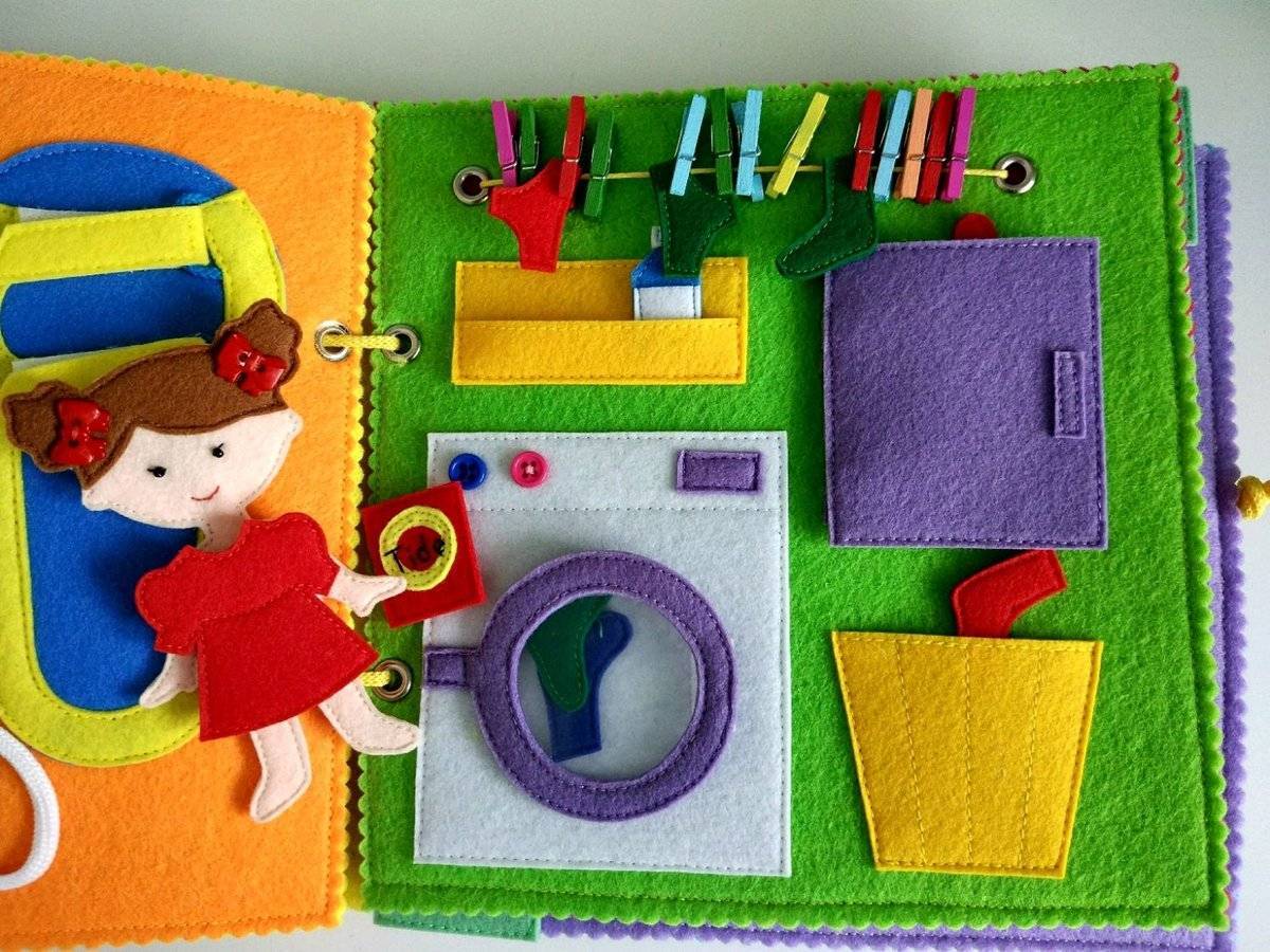 Главная функция развивающей книжки – привлечь ребёнка к действию. Элементы на страничках должны его заинтересовать, вызвать желание потрогать, пощупать, подёргать и т. д. Каждый новый листик может отобразить уникальные идеи фантазии, плоды которой принесут огромную пользу для малыша.