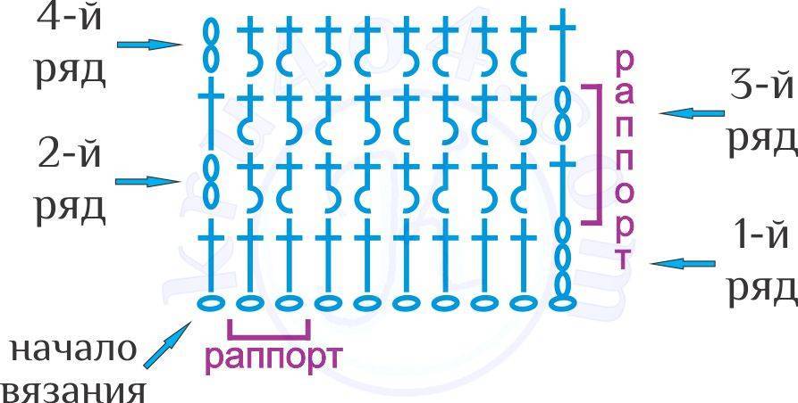 Схема вязания резинки крючком 1 на 1 рельефными столбиками