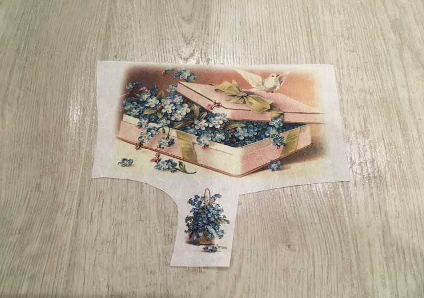 В прямом декупаже используется техника наклеивания картинки на наружную сторону объекта.