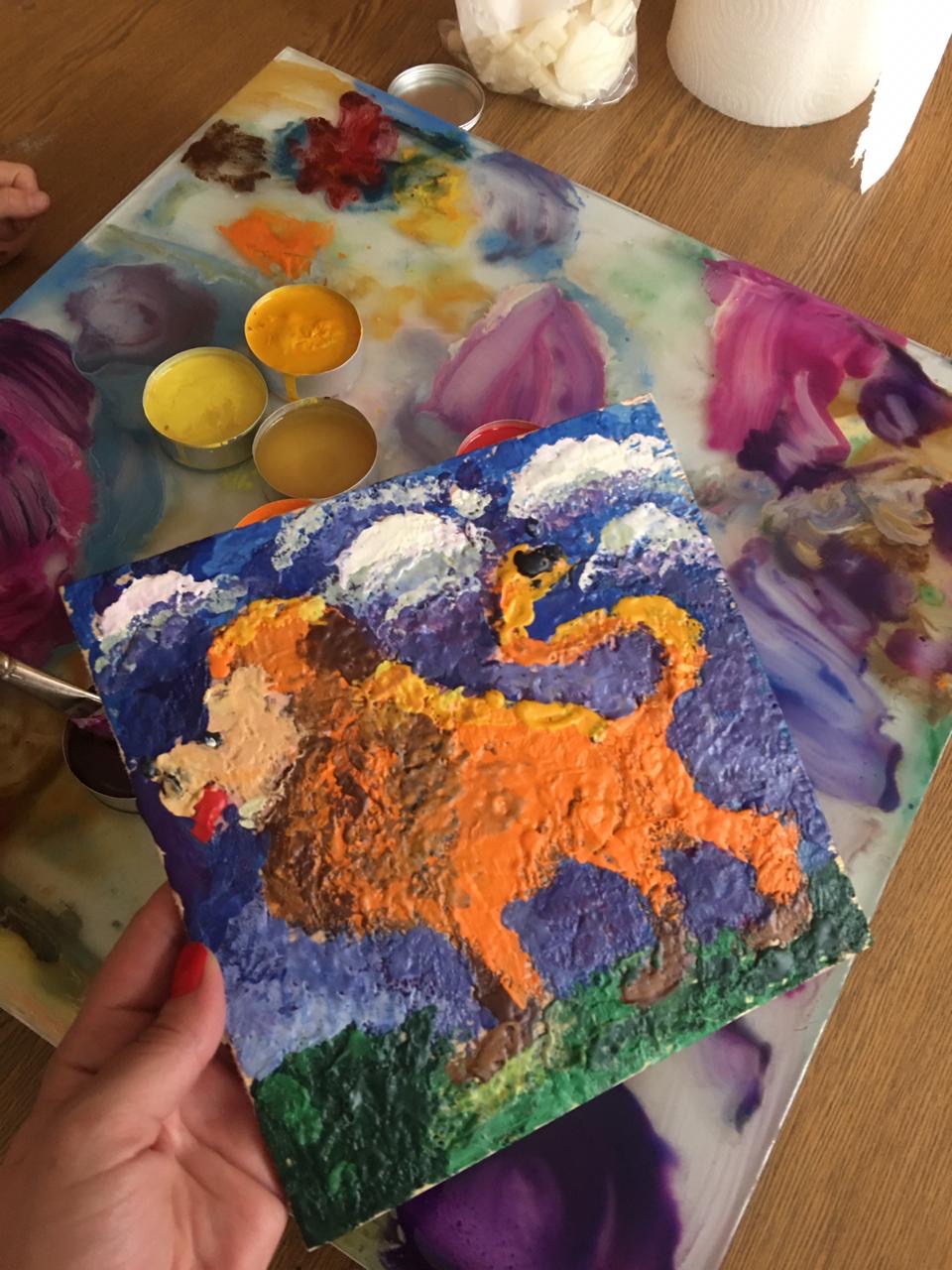 Под руководством Юлии Мамонтовой и под контролем педагогов дети изучали технику живописи «Энкаустика» и написали свои собственные работы горячими восковыми красками из пчелиного воска, смолы и пигментов. С таким необычным способом создания произведений живописи они познакомились впервые.