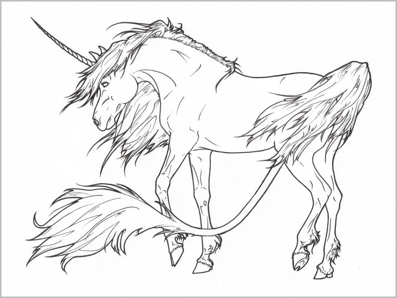 Красивый и грозный конь с рогом. Рисунки для срисовки единорог очень популярны. Дальше ещё будут единороги!