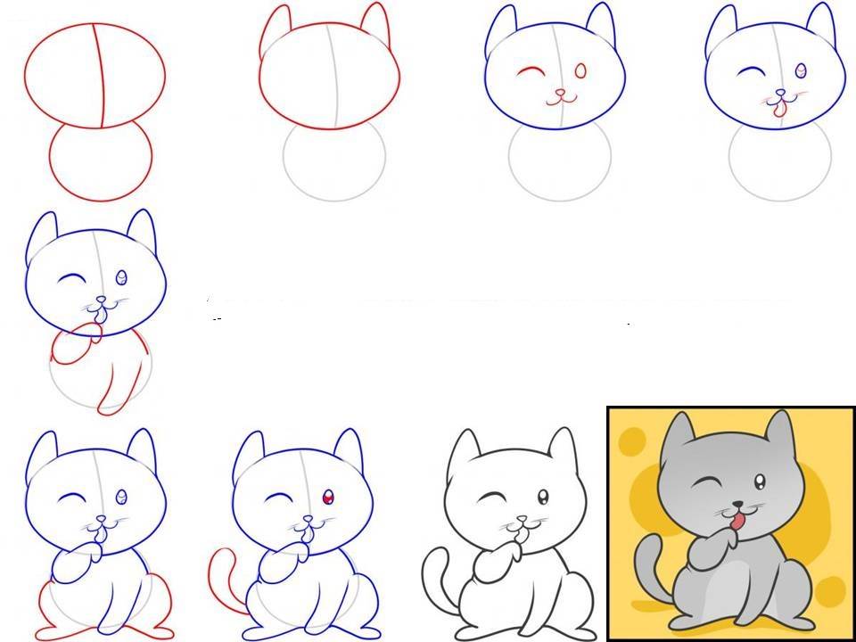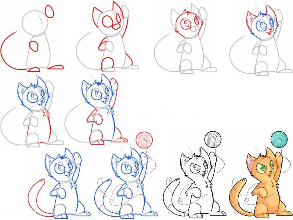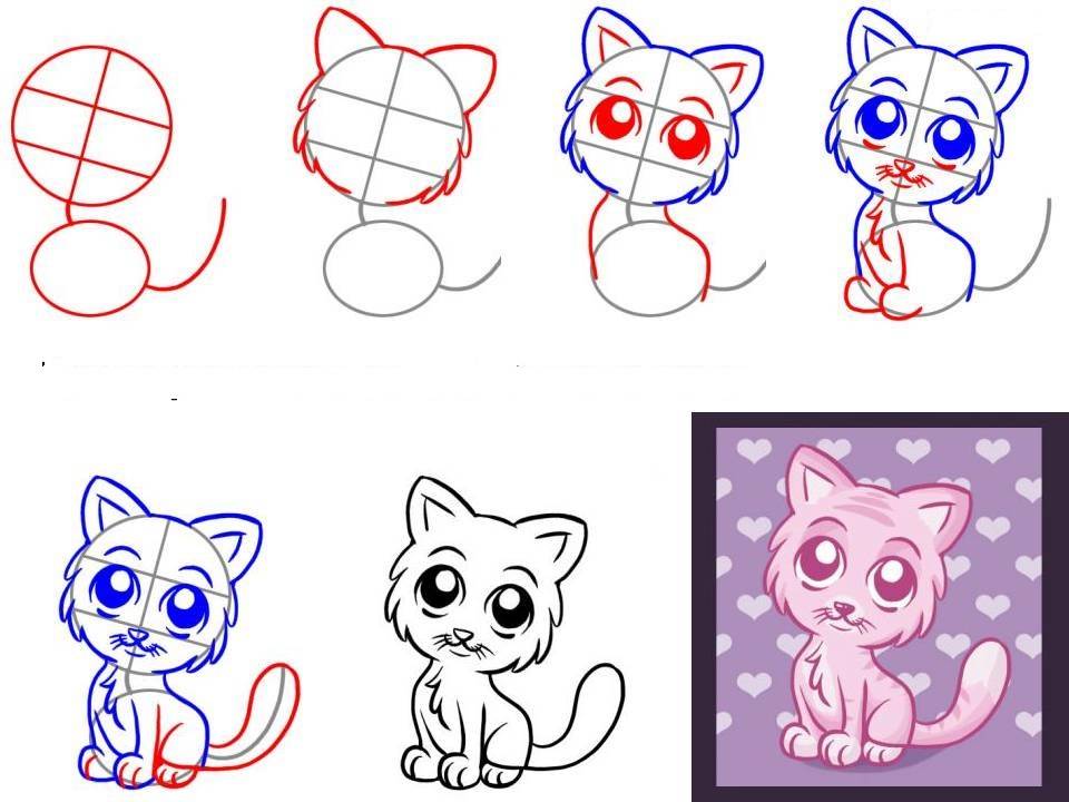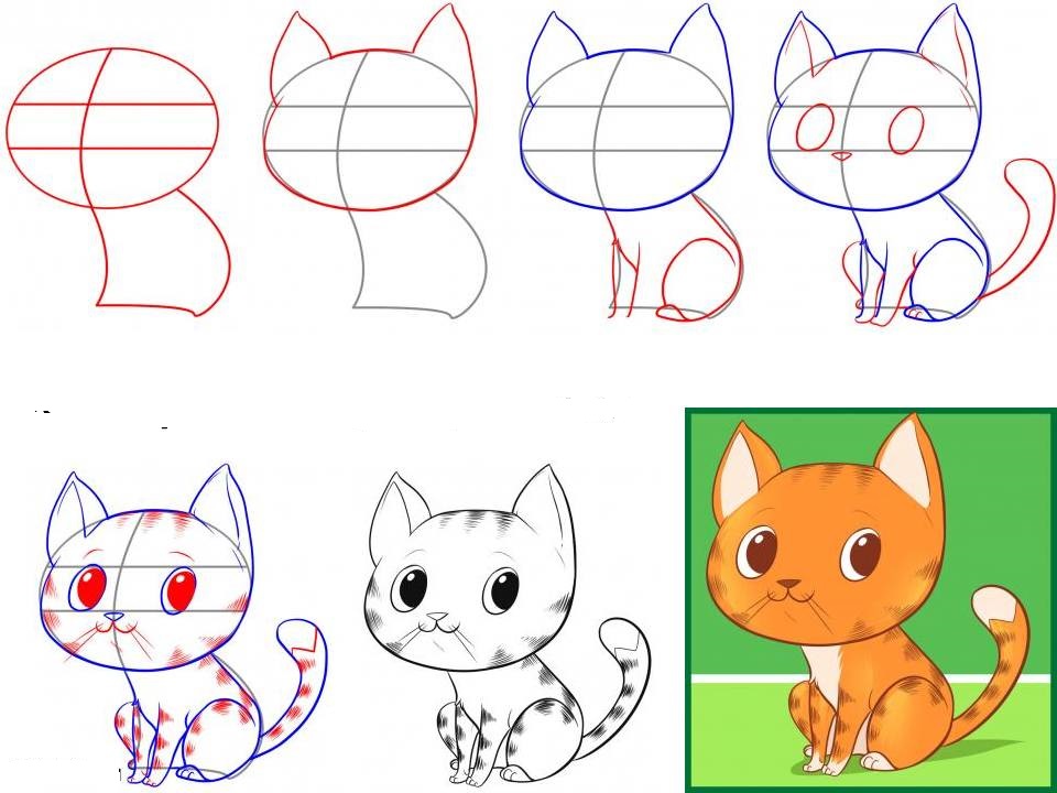 Рисуем поэтапно котенка для начинающих вместе с ребенком:
