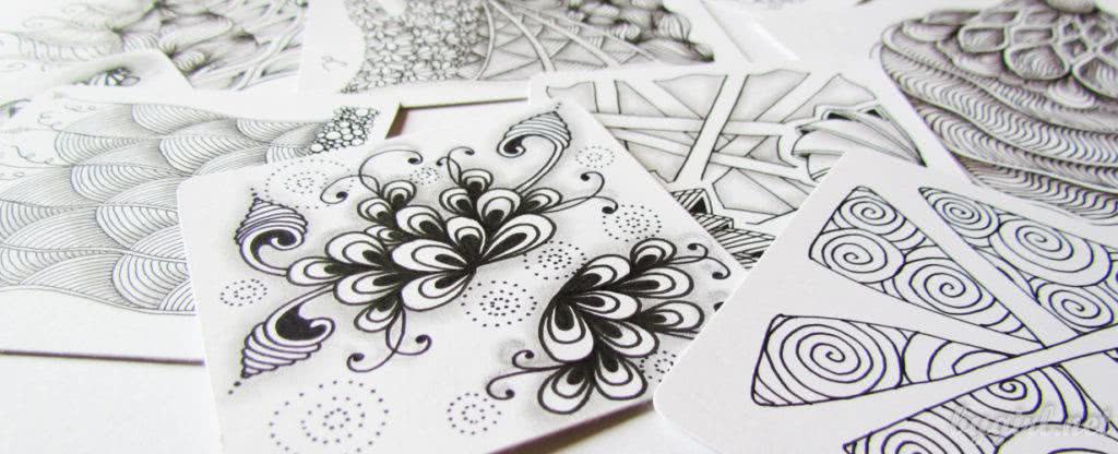Однако поскольку для рисования обычно используются черные чернила, предпочтение отдают белому полотну. Если не удастся разыскать в продаже соответствующие плитки, предназначенные для зентангла, а ждать доставки заказа, оформленного в онлайн-магазине, не хочется, можно сделать такую плитку в домашних условиях.