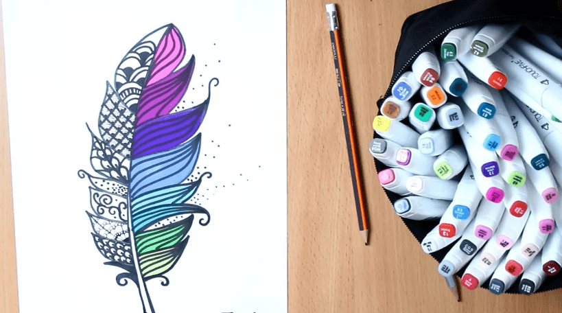 Начинать же рекомендуется с традиционного черного. Когда некоторые навыки будут получены, можно переходить к другим оттенкам. Добавить красок изначально черно-белому рисунку помогут разноцветные маркеры.