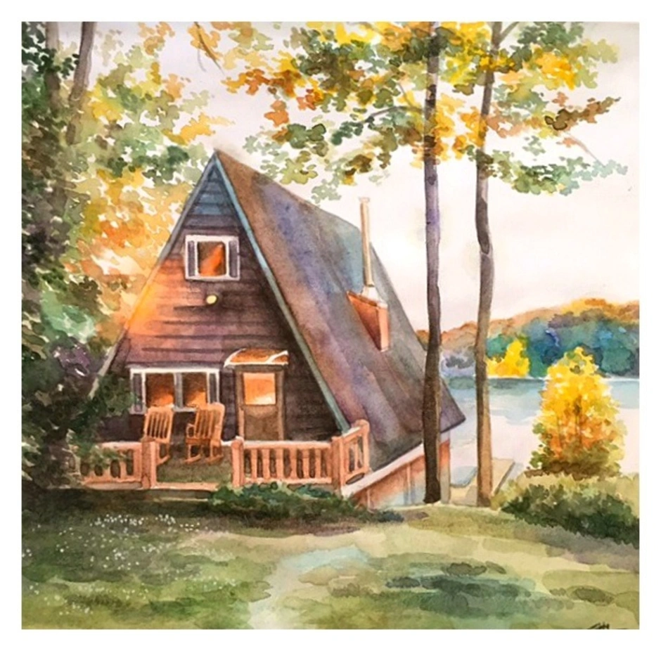 Как нарисовать дом на фоне красивого лесного пейзажа, если только начинаешь работать с акварелью.