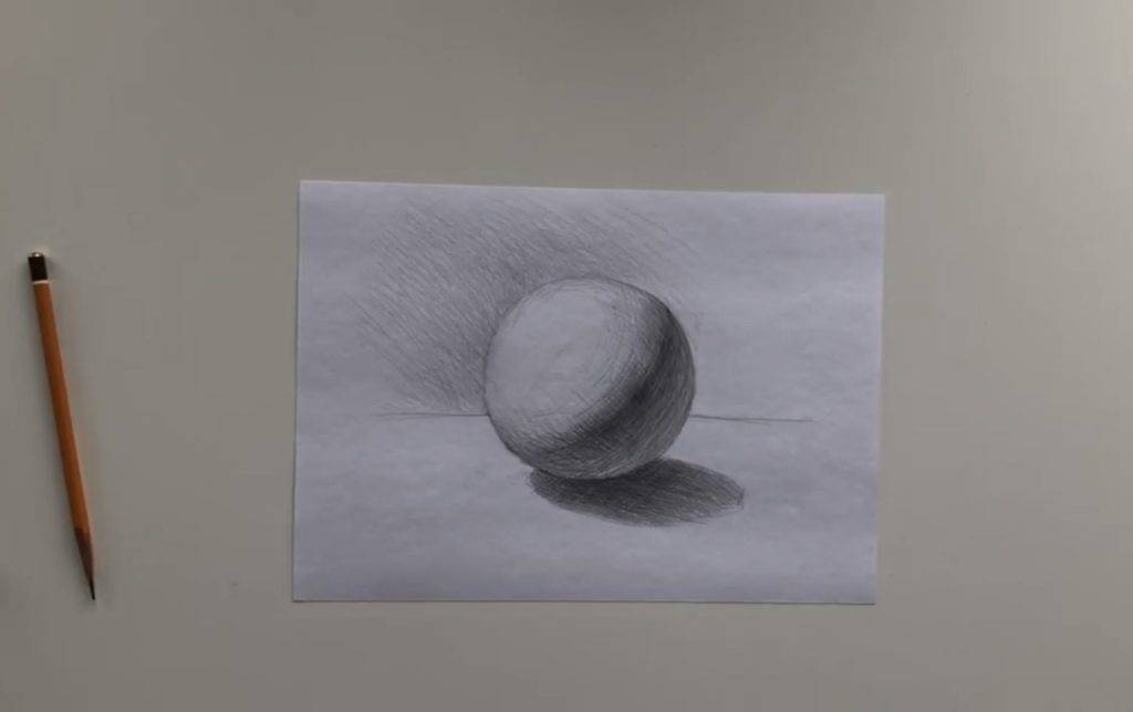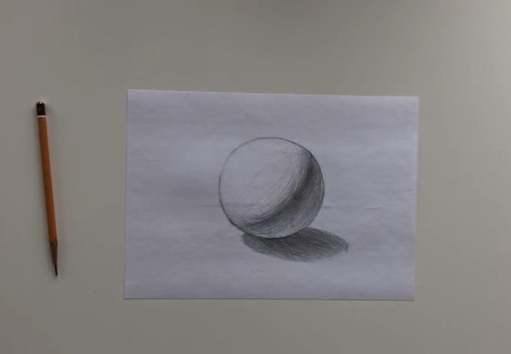 Геометрическая форма шара самая простая из всех фигур, но для рисунка шар является самым сложным заданием. В первую очередь, начинающим сложно нарисовать ровный круг, трудно добиться плавных тональных переходов при штриховке, чтобы шар на рисунке не имел вмятин. Шар можно осветить естественным светом от окна или мягким светом с рассеивателем. Такой свет лучше, он не даёт резких теней.