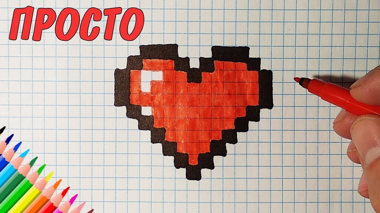 Как красиво нарисовать сердечко по клеточкам в тетради
