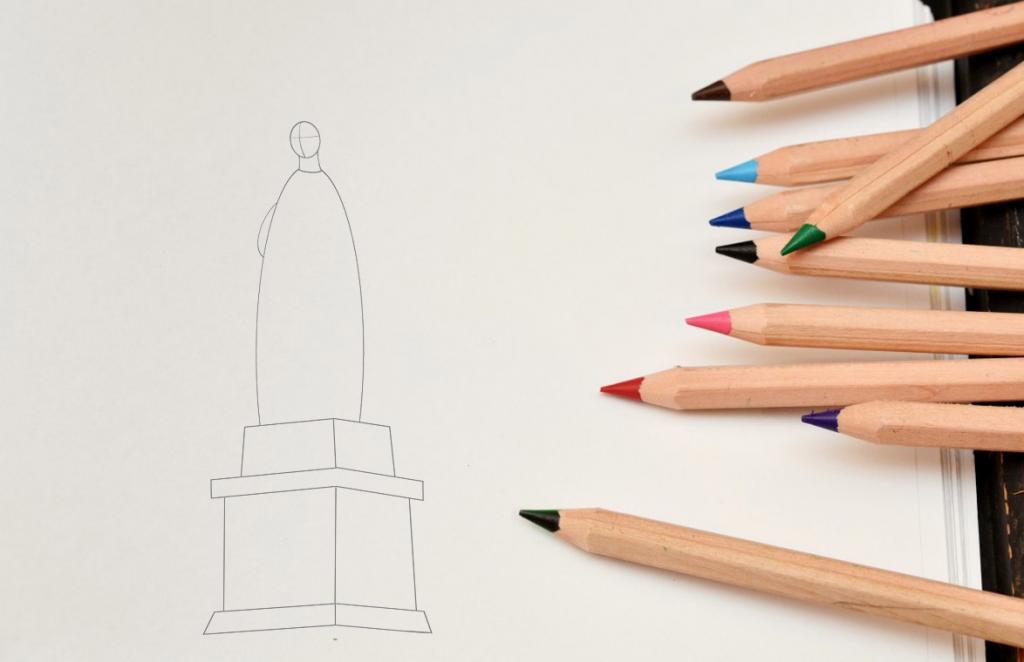 Сначала обратите внимание на голову статуи. Для начала обведите ее контуром, используя легкий нажим карандаша