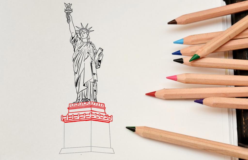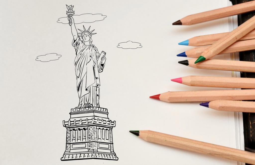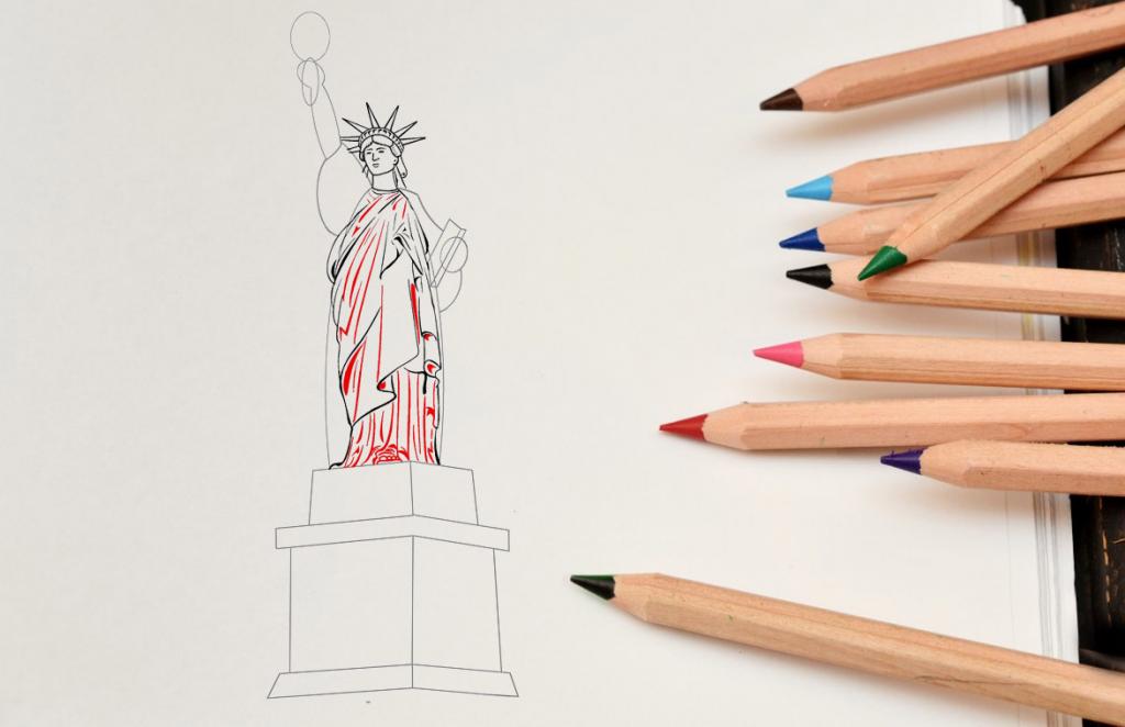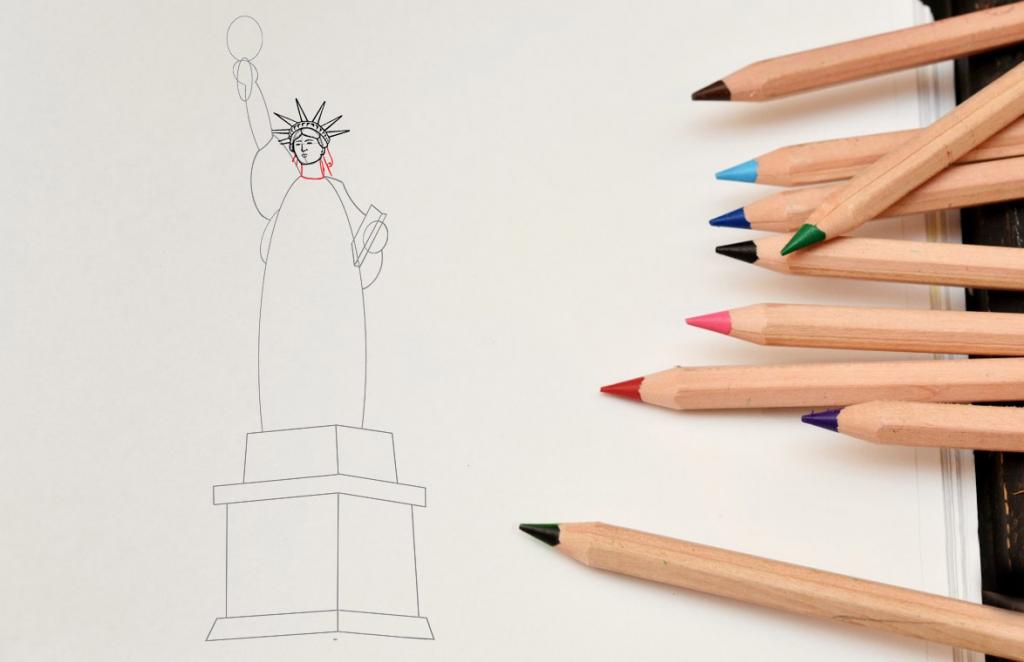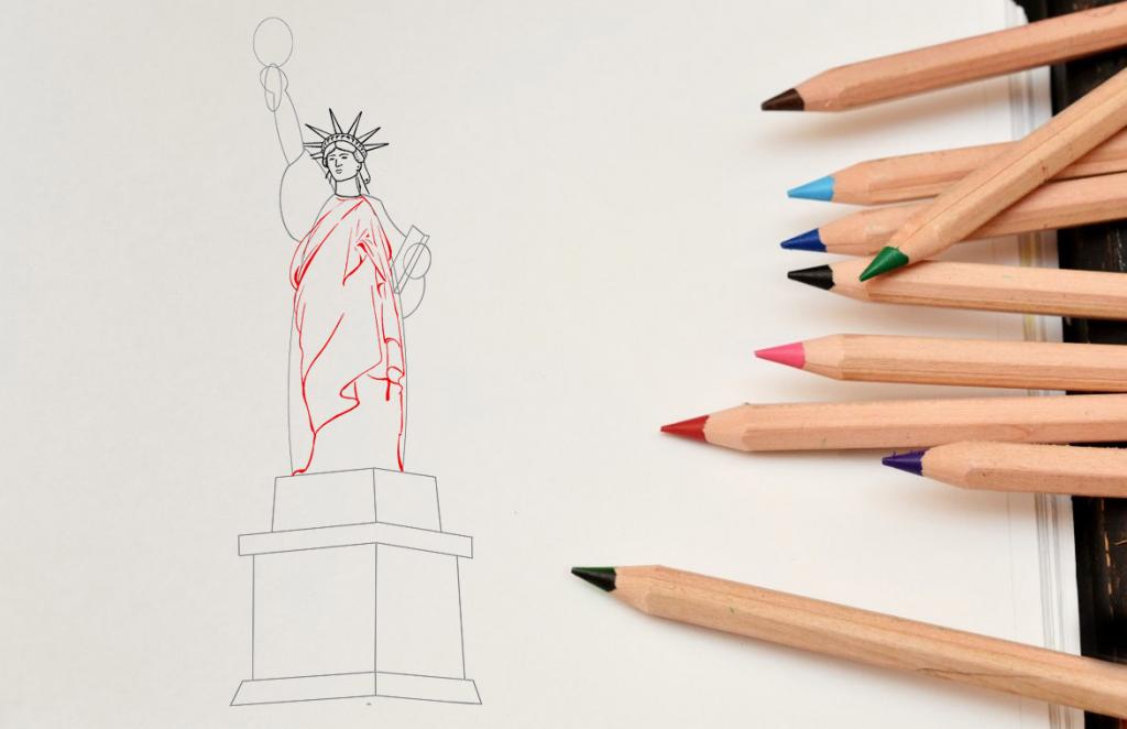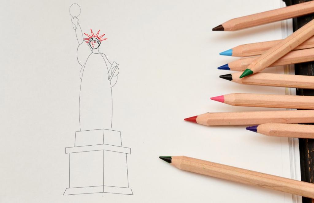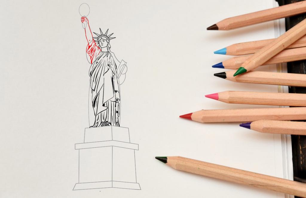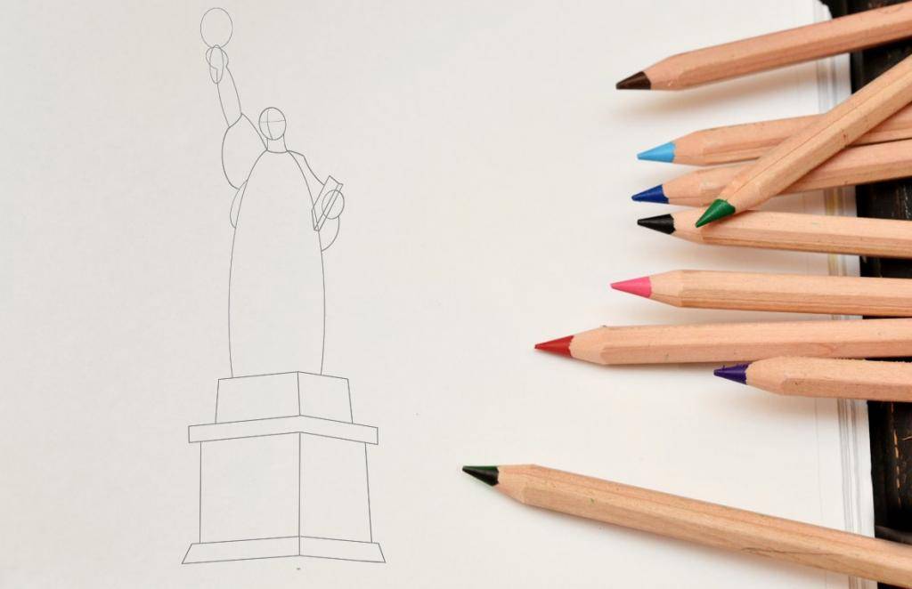 Как поэтапно нарисовать Статую Свободы карандашом?