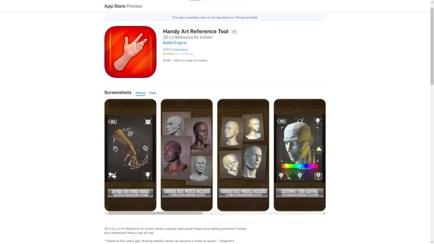 With both an iOS and an Android version available, this “handy” tool sure is amazing! You can tweak every 3D hand model to a specific pose you need and draw it. This is a great drawing hands reference tool.