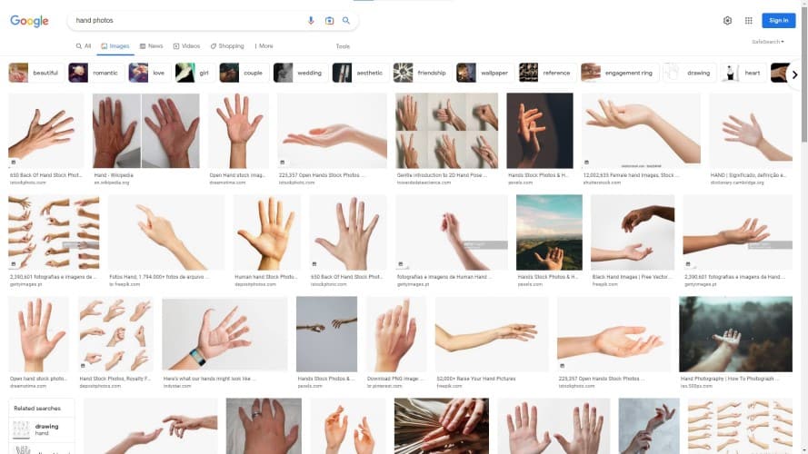 If you run out of options from the other websites I’ve listed and are still looking for more hand reference photos, Google has you covered.