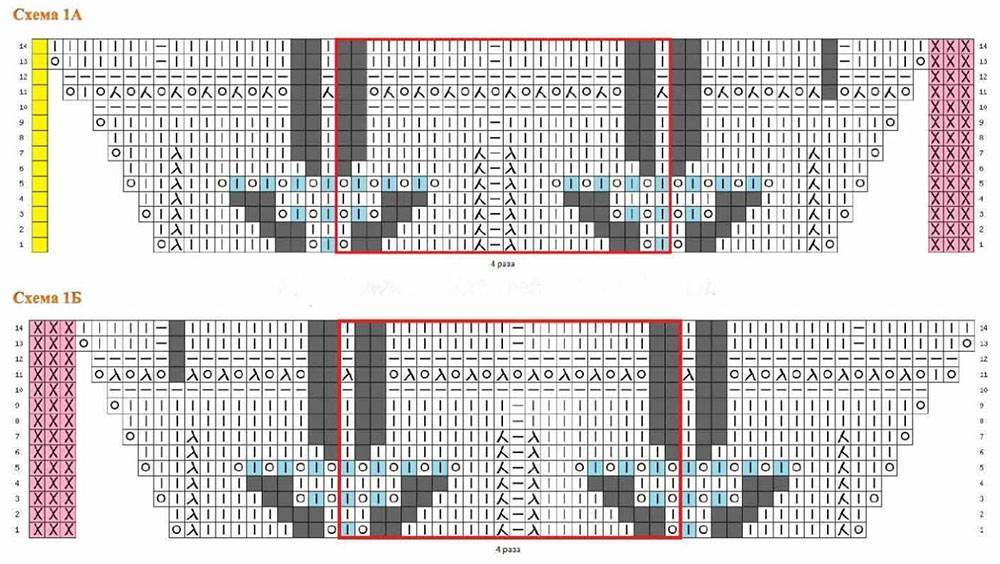 Сколько раз повторить каждую из схем уже не прочтешь, установим это опытным путем, кто будет вязать точно по схеме.