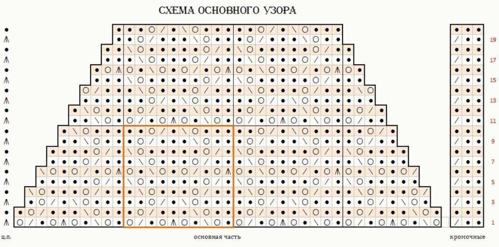 Вяжем основной узор с прибавлением петель.