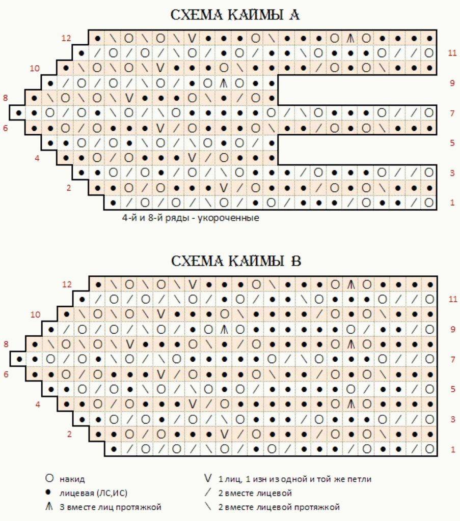 Оригинальные схемы дизайнера для шалей А и B содержат очень непривычные обозначения петель. Но не стоит бояться этих схем! Oсиночка Катюфка проделала титанический труд — для нашего удобства привела их в более современный вид.
