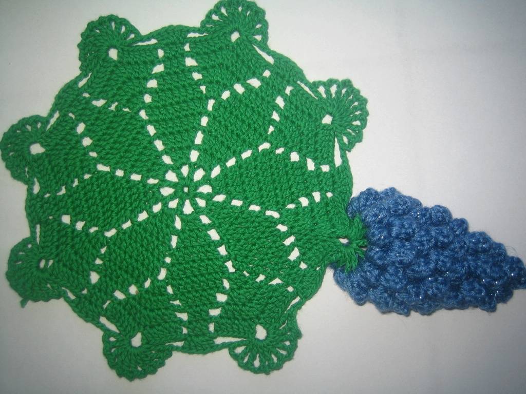 Продолжаем вязание салфетки. Мы сделали самую сложную часть из попкорна, т.е. сам виноград, сейчас процесс вязания ускорится.