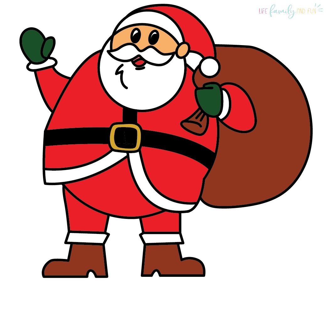 На сайте в этот момент ваш рисунок Санта-Клауса Вам понадобятся маркеры, мелки или цветные карандаши, чтобы раскрасить его. Не забудьте, что вы можете вернуться и стереть все наложенные друг на друга линии в области лица или пряжки ремня!