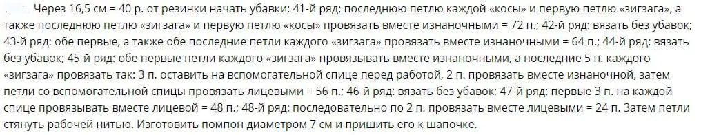 Описание вязания шапки