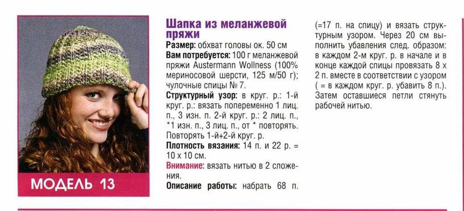 Модели модных шапок из мохера спицами