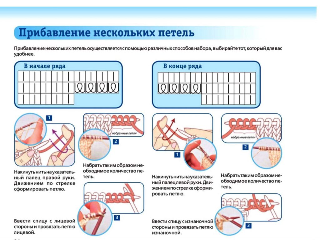 1-й ряд: изн, лиц, изн, лиц, изн.2-й: лиц, прибавка из протяжки, изн., лиц, изн., прибавка из протяжки, лиц. (7 пет.)3-й: все 7 пет. выполнять узором “рис” (лиц. над изн., и наоборот).4-й: как 2-й ряд, с прибавками из протяж. (= 9 пет.)5-й: как 3-й ряд (9 пет.).