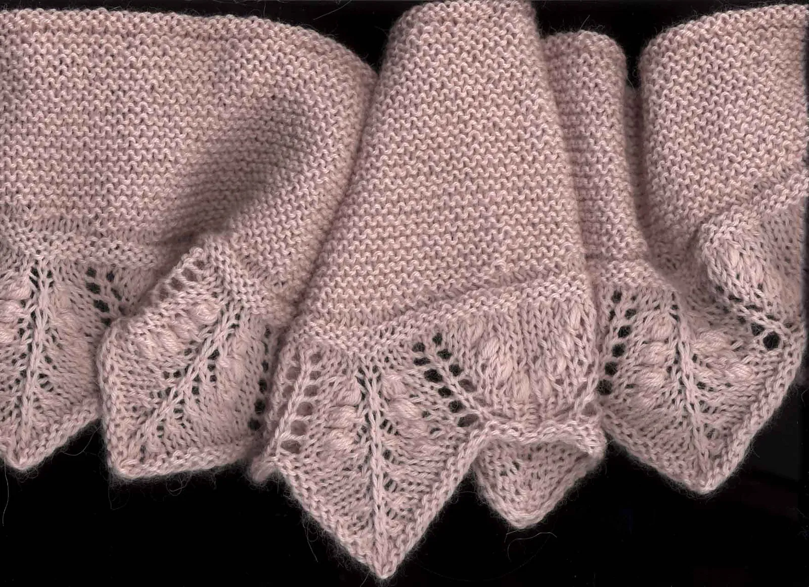 Кромочных петель три с каждой стороны полотна. Основной узор у этого шарфа – английская или любая другая резинка.