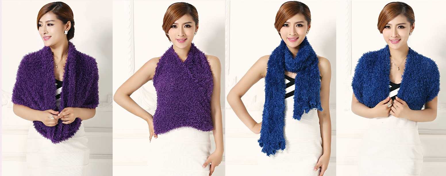 - Можно использовать ткань как болеро. Продеть руки в концы шарфа и закрепить за спиной. Прекрасная накидка подойдет к платью.