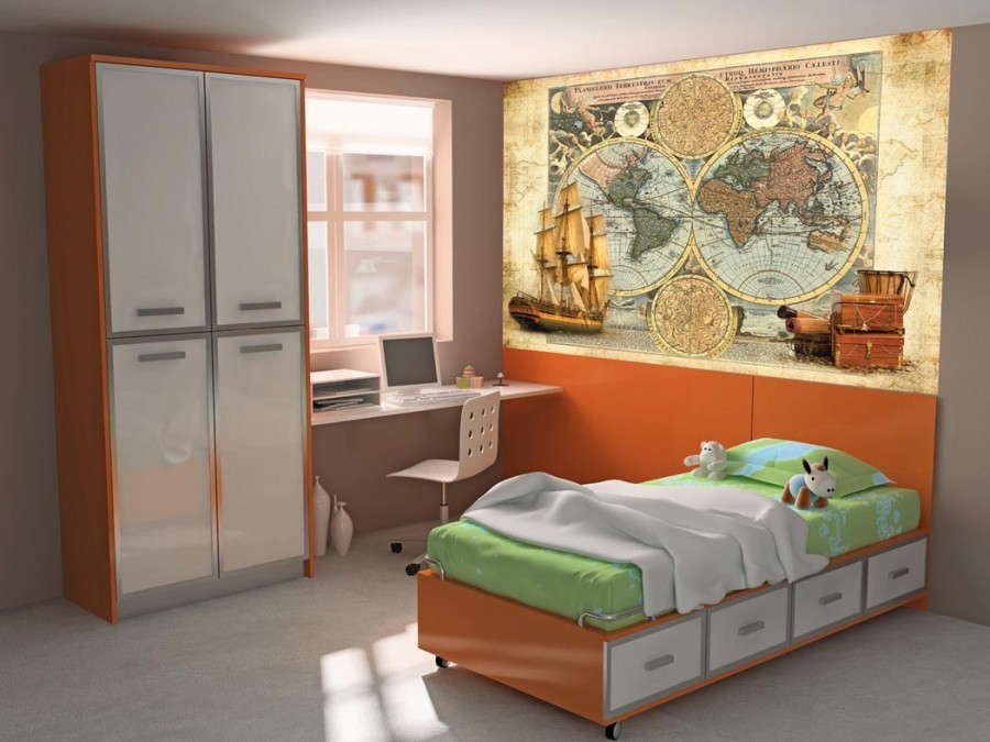 Стены в детской можно украсить панно из обоев, которое легко соорудить вместе с ребенком из остатков рулонных материалов, оставшихся после ремонта.