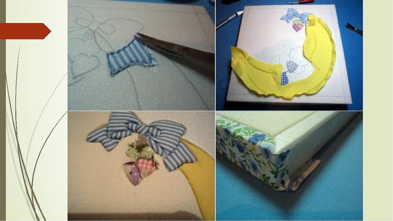 - Третий слой (верхний) является декоративным. Его комбинируют с аппликацией, коллажем, вышивкой.